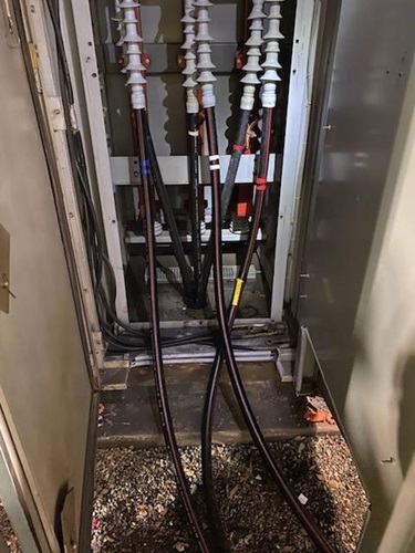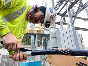 The photos below show SMUD workers working to splice cables at Station A substation.