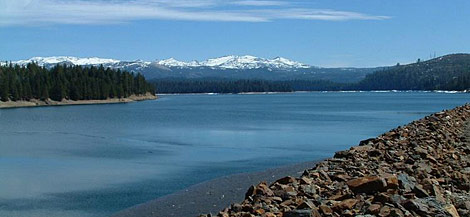 Located at 4,800' elevation in the heart of the Crystal Basin, Union Valley Reservoir is the largest lake in the area and has three boat ramps and many seasonal campgrounds, as well as a bike trail and available hiking. It is also a popular fishing location. Boat launch / ramp elevations: Sunset, 4,802'; West Point, 4,808'; Yellow Jacket, 4,850'.