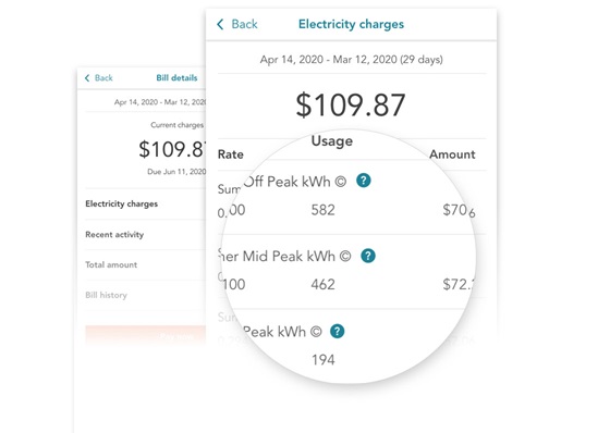 Staying in the know is quick and easy with the app. See the charges that make up your bill, including the kilowatts used at different times of your billing period.