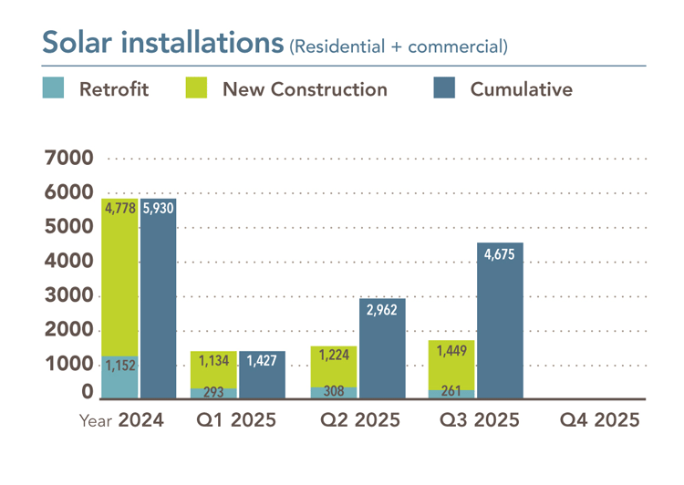 A lo largo de 63,000 clientes instalaron energía solar en los tejados, con un total de más de 475 MW de energía en el territorio de SMUD.