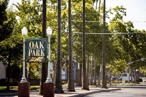 El primer suburbio de Sacramento, Oak Park, también desarrolló un segundo distrito comercial y de entretenimiento en el centro de la ciudad.