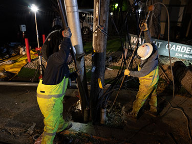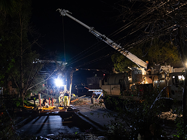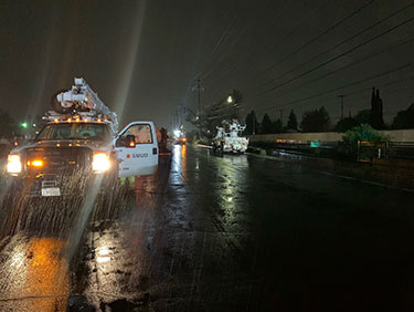 Las fotos que aparecen a continuación fueron tomadas durante una fuerte tormenta que azotó el área de Sacramento el 4 y 5 de febrero de 2024. Nuestras cuadrillas trabajaron día y noche para restablecer la energía a nuestros clientes.