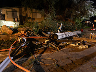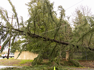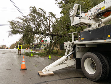 Cuando el viento o las tormentas dañan los árboles y crean riesgos para la seguridad en torno a las líneas eléctricas o equipos eléctricos de SMUD o provocan cortes de electricidad, SMUD podará o cortará los árboles para eliminar el peligro de seguridad pública y restablecer el servicio eléctrico. Es responsabilidad del dueño de la propiedad deshacerse de los restos de árboles de su propiedad. SMUD alienta a los clientes a que llamen a un servicio con licencia de remoción de árboles para que lleven a cabo este trabajo.
