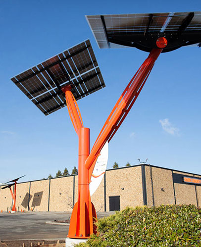 使用這種雙陣列、 12面板太陽能樹每年可產生足夠的清潔能源,以便:
