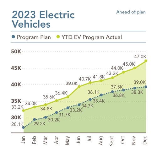 | Bilang ng mga light duty na EV sa teritoryo ng serbisyo (cumulative) | 32,396 | 34,796 | 38,959 | 43,256 | 46,504 | 39,000 |